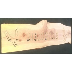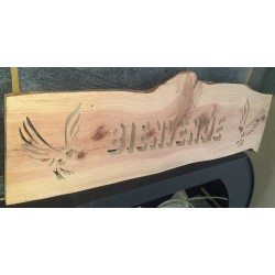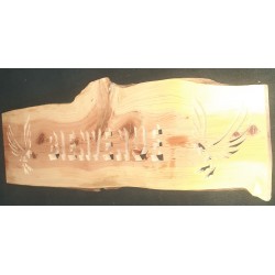 Réalisé dans une essence de bois rare ("Pour faire un arbre, Mon Dieu que c'est long"...) ce joli panneau à la police en 3D captera très vite l'attention de vos invités qui pénétreront dans votre univers !